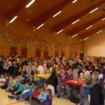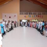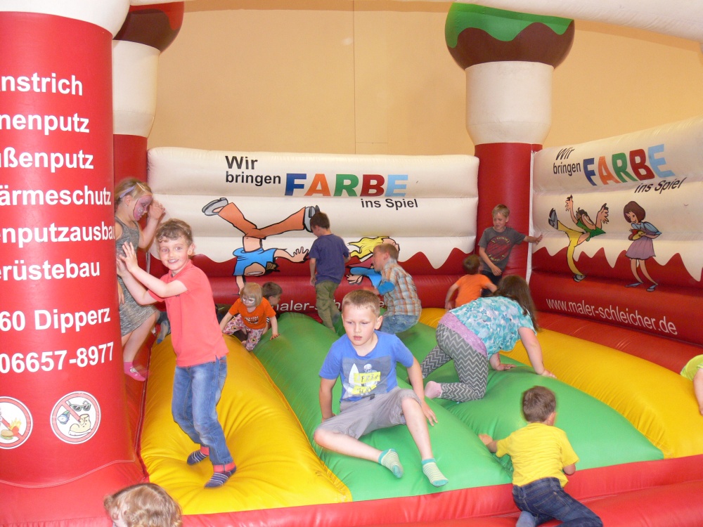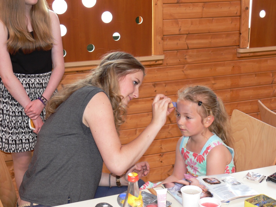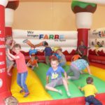 Im Versammlungsraum des Gebäudes, waren die Kinder zum gestalten eines riesigen gemeinsamen Bildes aufgerufen. Unter dem Motto „Kinder miteinander, Kinder füreinander“ brachten sie ihre Gefühle und Gedanken zu Papier. Es war interessant zu beobachten, wie Sonne um Sonne, Regenbogen für Regenbogen oder das riesige Blumenmeer entstand.