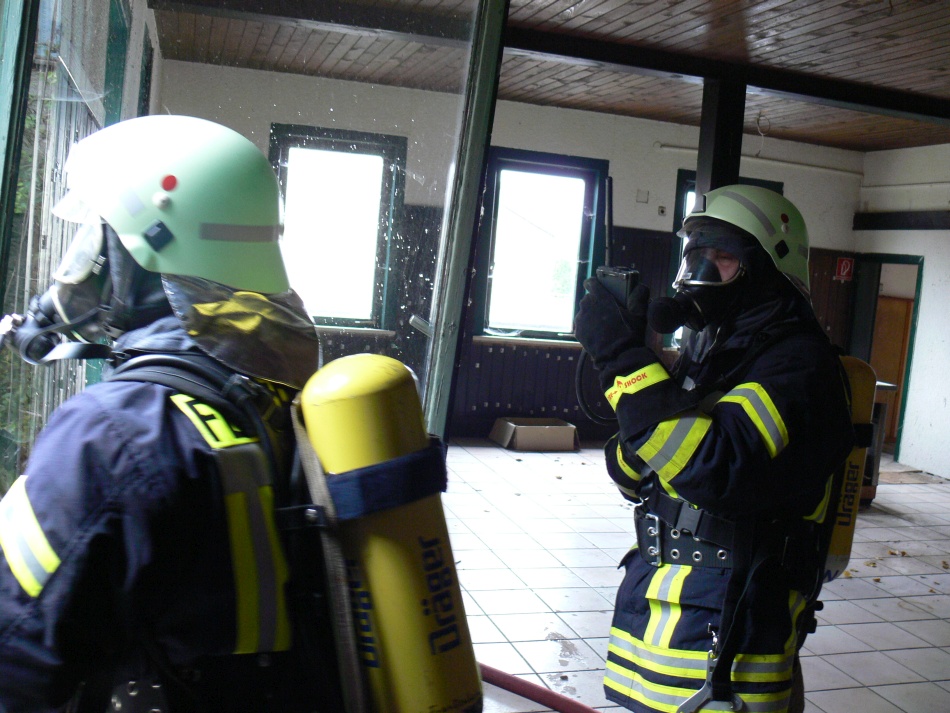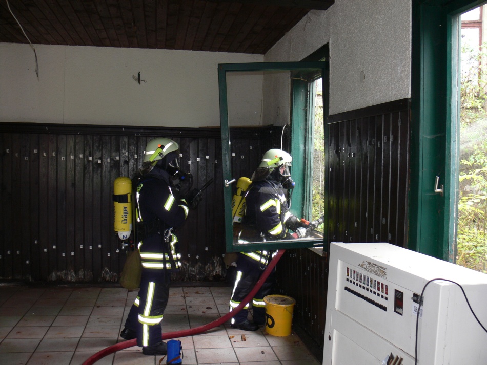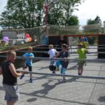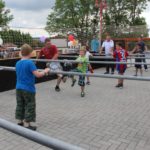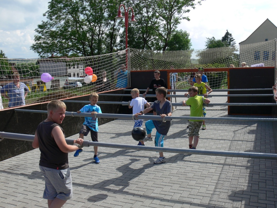 Auf dem Parkplatz vor dem Kindergarten hatte die Feuerwehr einen kleinen Parkour aufgebaut. Dort konnten die Sprösslinge ihre Geschicklichkeit unter Beweis stellen und auch schon mal den Umgang mit dem Strahlrohr üben.